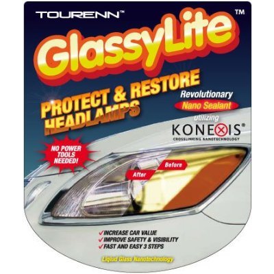 Introducing the world's most advance and first real headlamp restoration system. GlassyLite is an OEM grade headlamp resurfacing package now available to the public as a DIY (do it yourself) kit. GlassyLite requires no power drills and is meant to be done by hand thoughout the entire process. This treatment is applicable for all hazy, yellow or dull plastic headlamps. The innovation is the nanosealant from KONEXIS. The nanosealant is a special crosslinking oligomer which are 20nm wide and has self leveling properties. The nanosealant provides a chemically fused bond by crosslinking with open bonding sites on the polycarbonate surface. The new layer protects and prevents polycarbonate from degrading via hydrolysis, ultraviolet light, heat or mechanical abrasion.